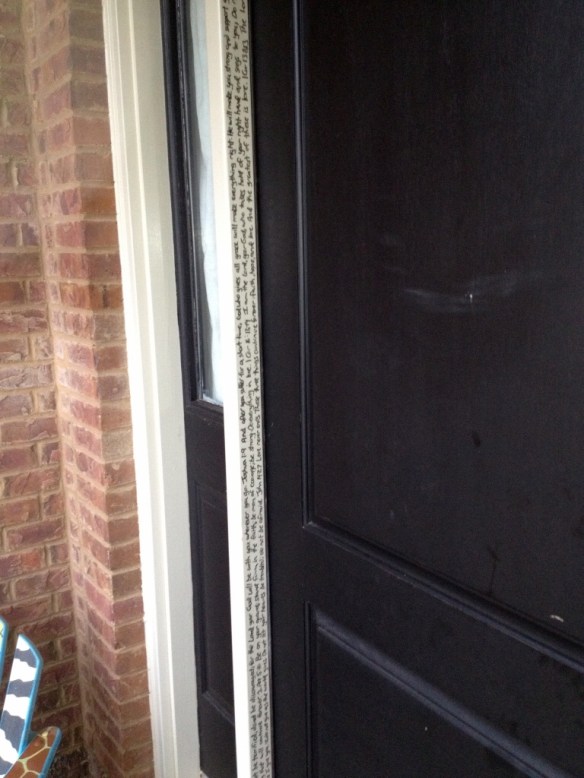Note – Doorpost image, the scribe suggested using white duck tape and a permanent marker to scribe verses on the doorposts.